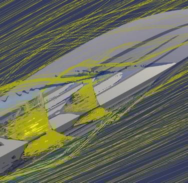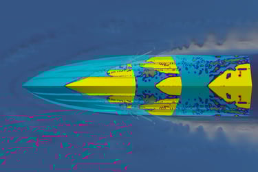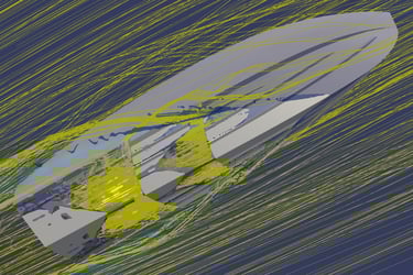 navale: studio di carena, calcolo resistenza idrodinamica, assetto di navigazione, previsione performance e autonomia, risposta dinamica a moto ondoso, comfort di navigazione